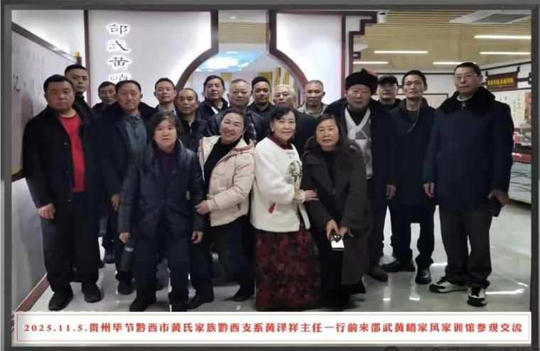 2025年12月5日下午15:30,贵州毕节黔西市黄泽强宗长一行16人抵达邵武恳亲谒祖。邵武黄氏峭山公后裔联谊会第一组值班人员来到黄峭广场,热情接待黔西谒祖团宗亲,大家见面亲如家人。泽强宗长十分高兴,他说:“千年等一回,我们终于回家了,”